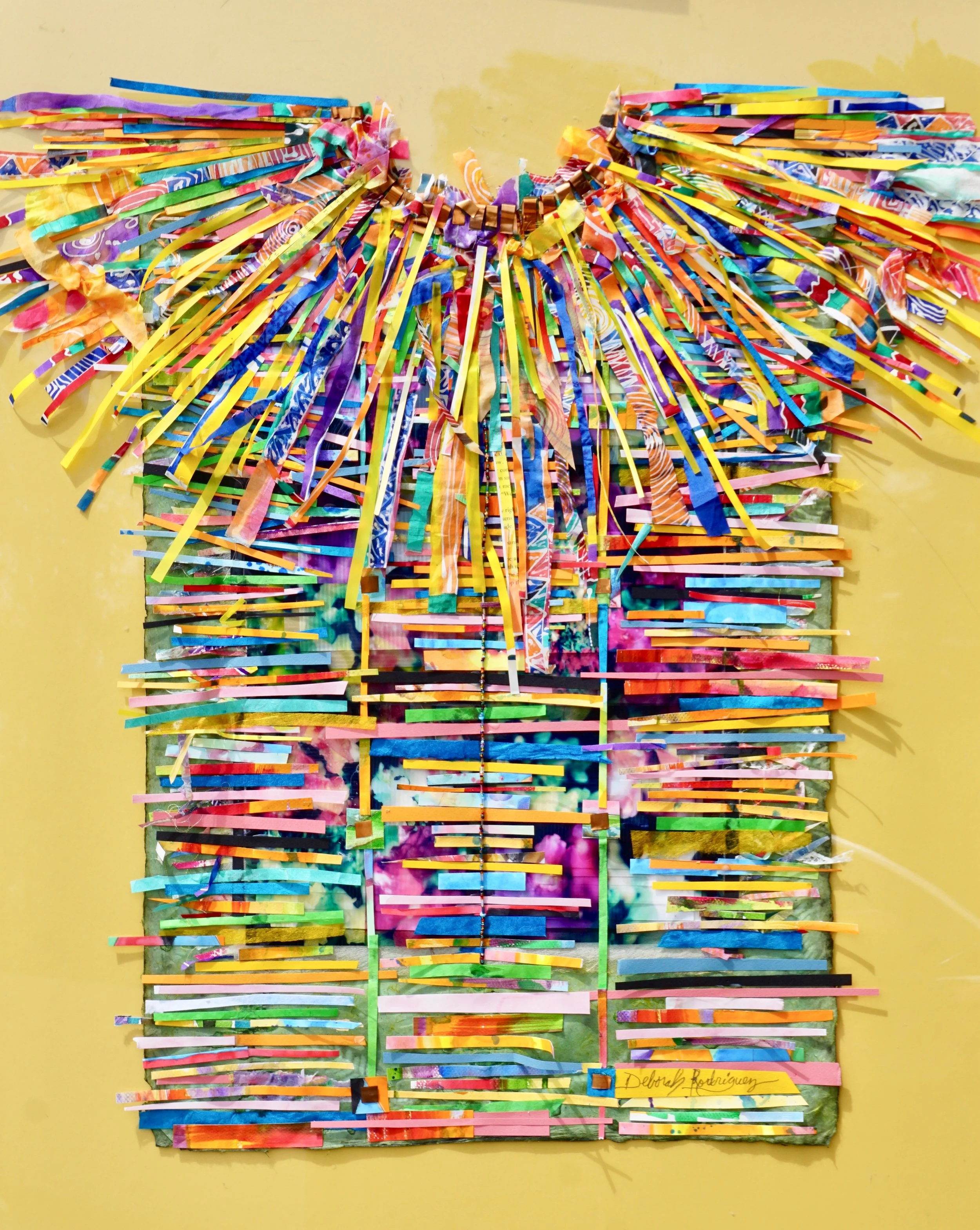 I am inspired by The Egungun culture. The Egungun are the Yoruba people, a West African ethnic group in Nigeria. The Egungun people celebrate by having an annual festival to honor their ancestors. The Egungun Dancers are the most important actors in the festival. The dancers wear customs made of heavy strips of fabric. The dancers twirl around in circles. As they spin the heavy strips fly out creating a blessing breeze that invites the spirits of their ancestors to join them in this glorious praise of life.